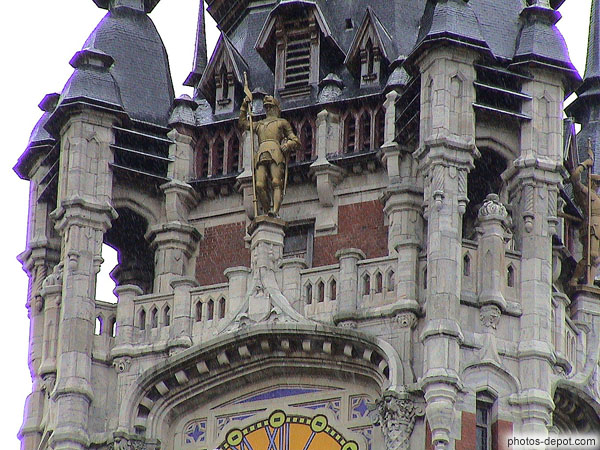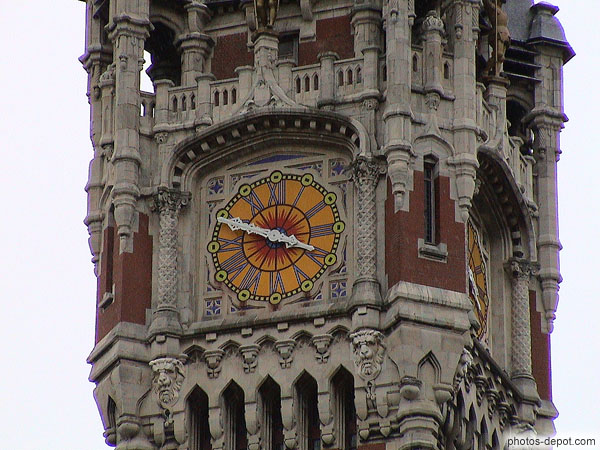 Détail du beffroi, France, Nord, Côte d'Opale, Calais