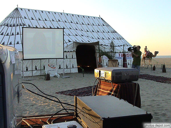 Projection cinéma sur la plage, France, Normandie, Deauville