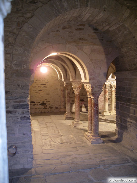 Magnifiques colonnes de marbre rose et voute plein cintre, France, Languedoc Roussillon, Prieure de Serrabone