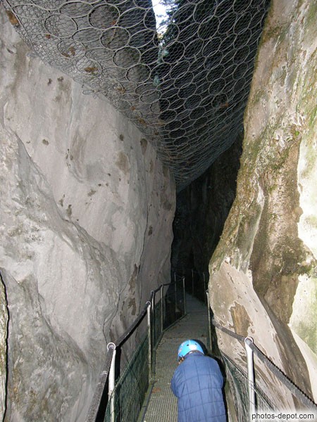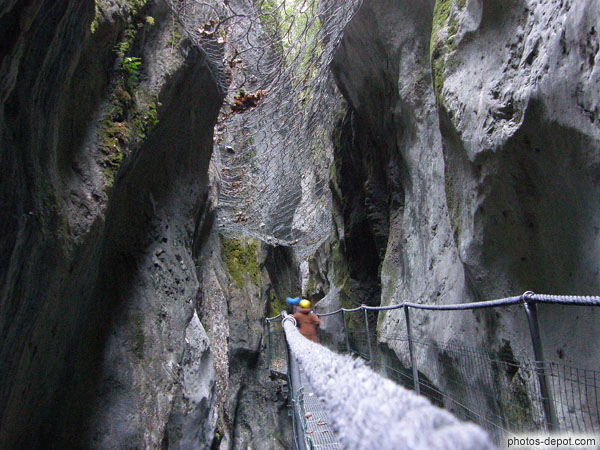 Passerelle métallique et filet de protection, France, Languedoc Roussillon, Gorges de la Fou