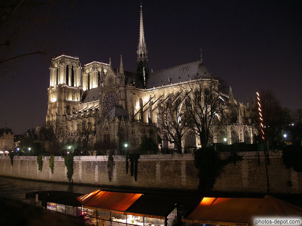Chevet et transept Cathédrale éclairée la nuit, France, Paris, Ile de la Cité, Cathédrale Notre Dame