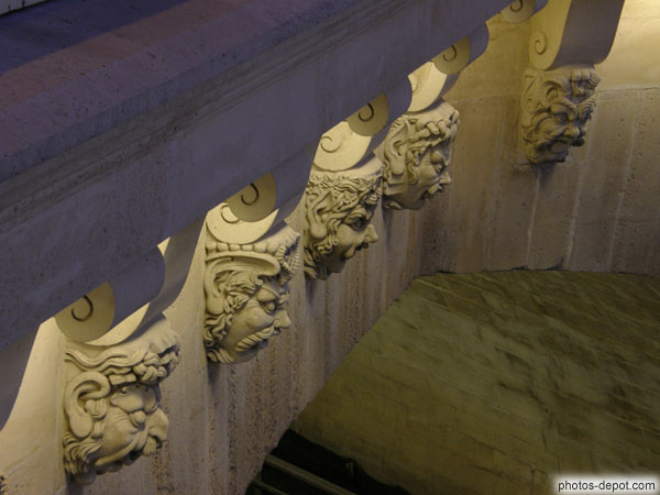 Détail têtes grotesques du Pont neuf, France, Paris, Ile de la Cité, Pont neuf