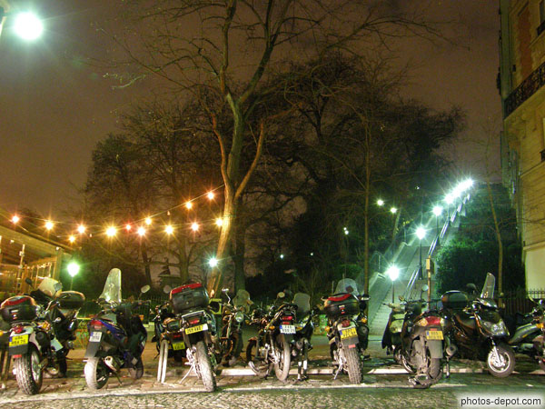 Motos garées en bas de l'escalier, France, Paris, Montmartre