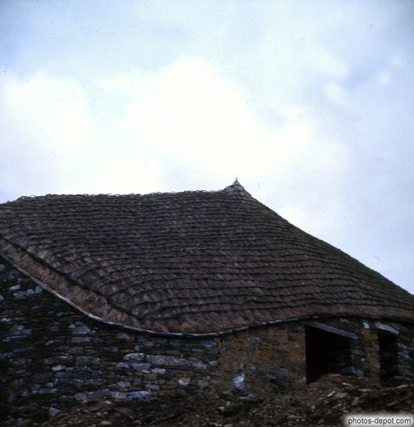 Maison de pierres seches et toit de chaume encordé, Inconnu
