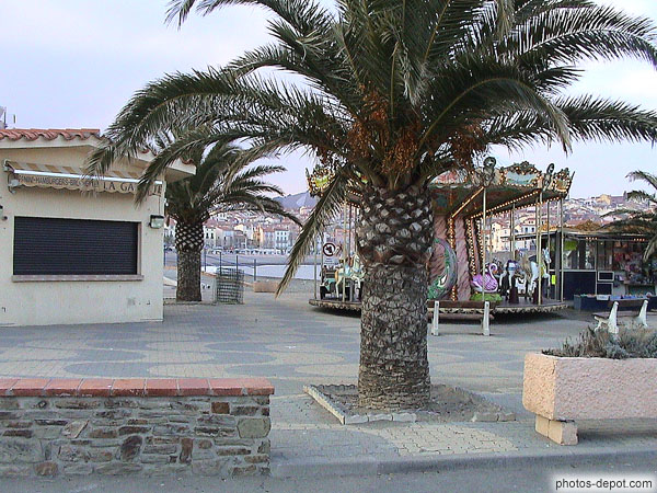 Palmier devant le manège, France, Languedoc Roussillon, Banyuls