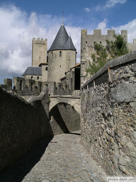 Pont d'accès au chateau, France, Languedoc Roussillon, Carcassonne