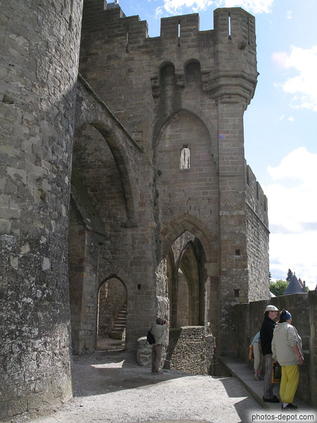Donjon du chateau aux baies gothiques rajoutées au XIIIe siècle, France, Languedoc Roussillon, Carcassonne