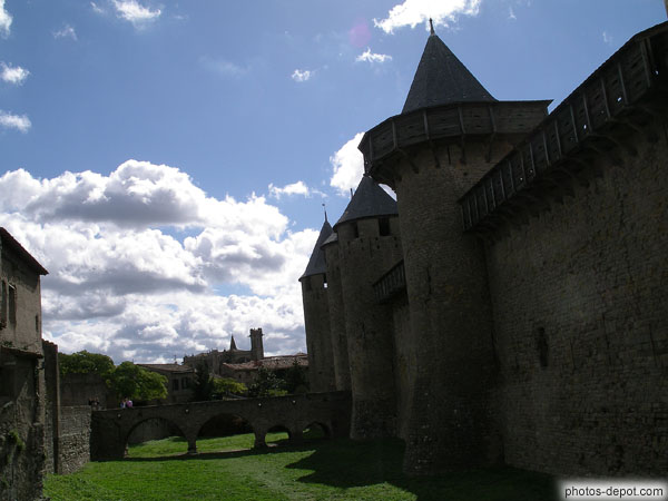 Murailles du chateau et hourds vus de la cour d'honneur, France, Languedoc Roussillon, Carcassonne