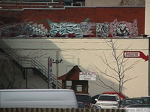 Mur taggé sur parking, Canada, Quebec