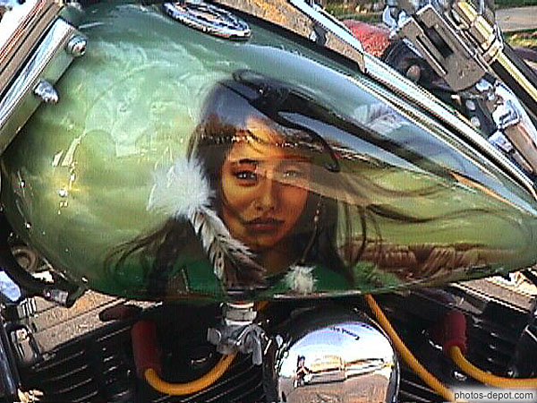 Réservoir Harley Davidson peint visage indienne, Canada, Montreal