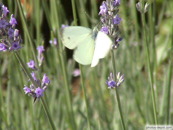 Papillon jaune sur fleur bleue, France, Anjou, Chemere le Roi