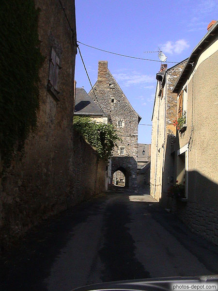 Rue et porche sous maison, France, Anjou, Chemere le Roi