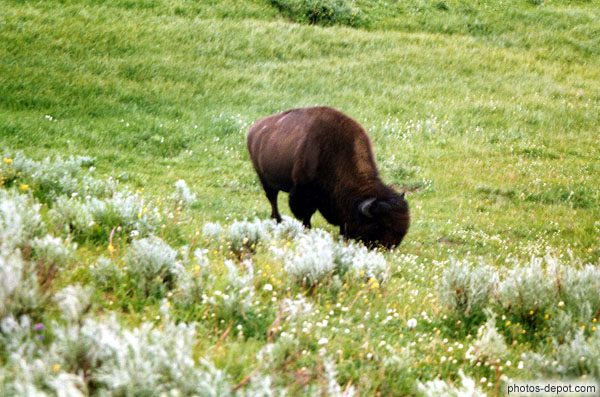 Bizon broute, USA, Wyoming, Yellowstone