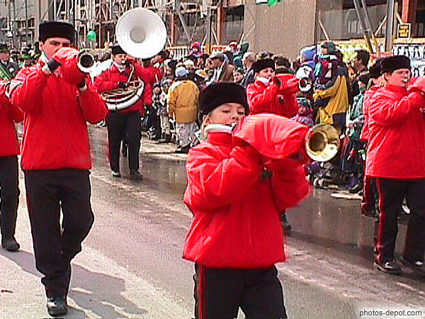 Trompettistes costume rouge, Canada, Quebec, Montreal, fête de St Patrick