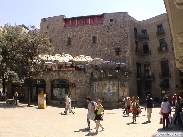 Place et Café terrasse devant le musée Dali, Espagne, Barcelone