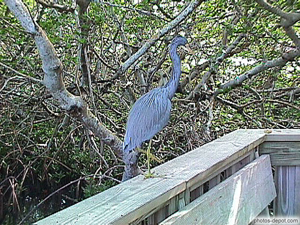 Héron bleu sur la balustrade, USA, Floride, Sanibel