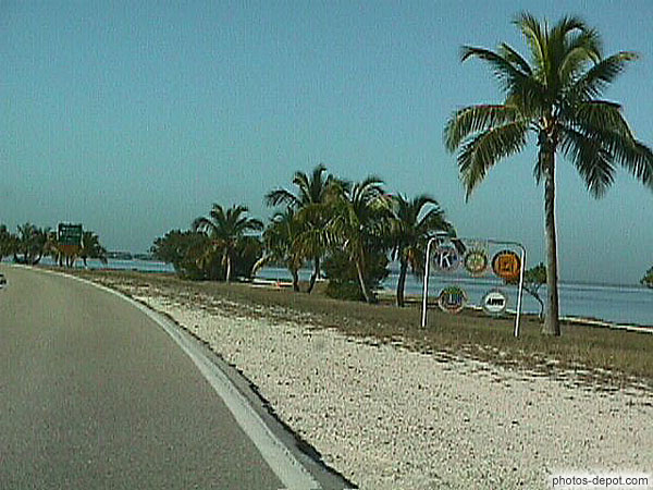 Panneaux et palmiers en bord de plage, USA, Floride, Sanibel