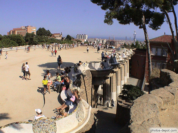 Grand place du Parc Güell construite par Gaudi, Espagne, Barcelone