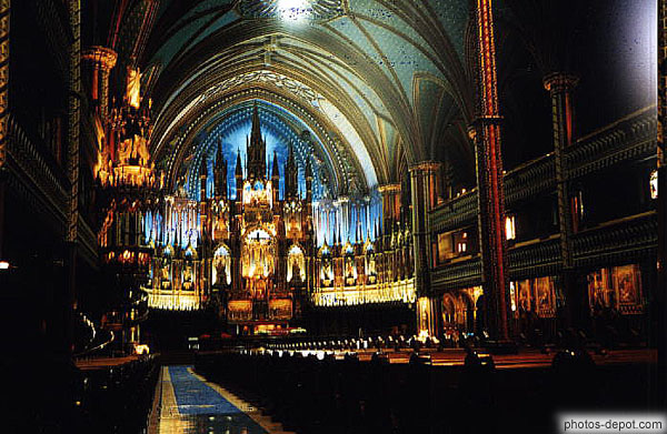 Intérieur richement décoré de l'église Notre Dame, Canada, Montreal