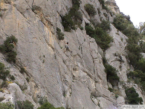 Alpiniste en pleine ascension, France, Languedoc Roussillon, Tautavel
