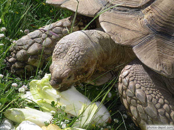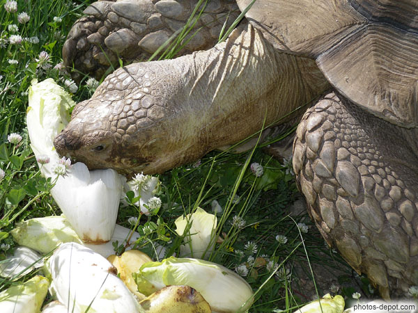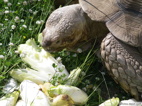 Endives en repas pour la tortue éléphantine, France, Languedoc Roussillon, Sorede