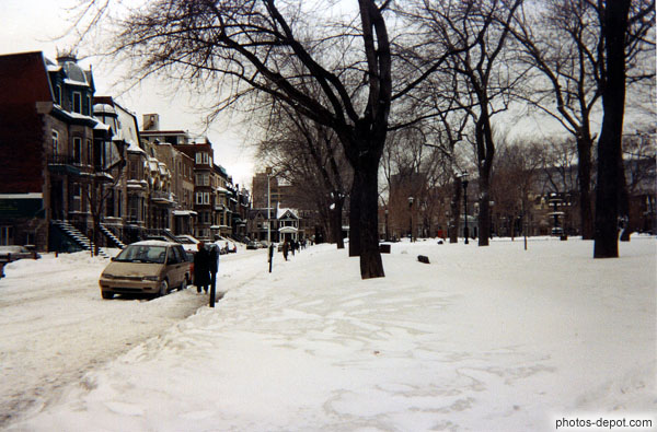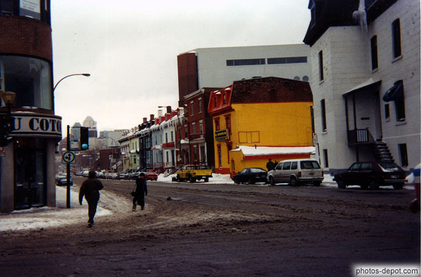 Maison jaune rue St Denis enneigée, Canada, Montreal