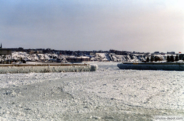 Port de Québec, fleuve St Laurent gelé, Canada, Quebec