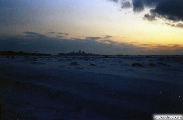 Québec derrière le St Laurent gelé, depuis l'Ile d'Orléans, Canada, Quebec