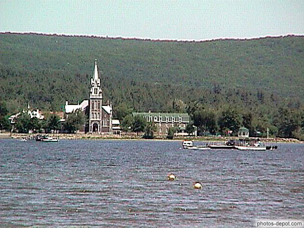 église d'Oka derrière le fleuve, Canada, Oka, Hudson