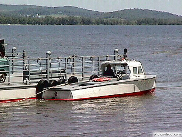 Petit bateau tractant le traversier du lac d'Oka, Canada, Oka, Hudson