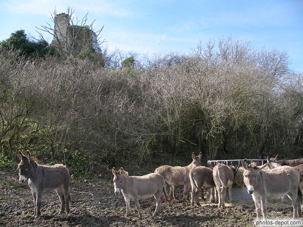 ânes devant le chateau, France, Aquitaine, Gurson