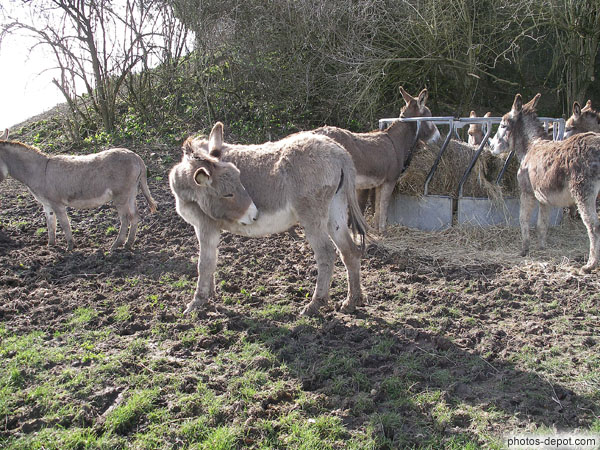 ânes devant le village, France, Aquitaine, Gurson