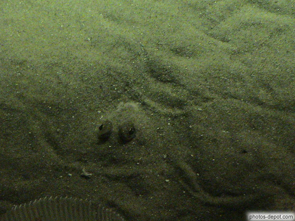 Yeux de carrelet dépassant du sable, France, Nord, Boulogne sur mer, Nausicaa