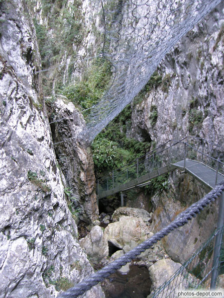 Passerelle et filets de protection, France, Languedoc Roussillon, Gorges de la Fou