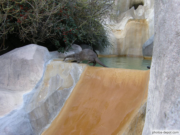 Loutre fait du tobbogan, France, Paris, Vincennes, Zoo de Vincennes