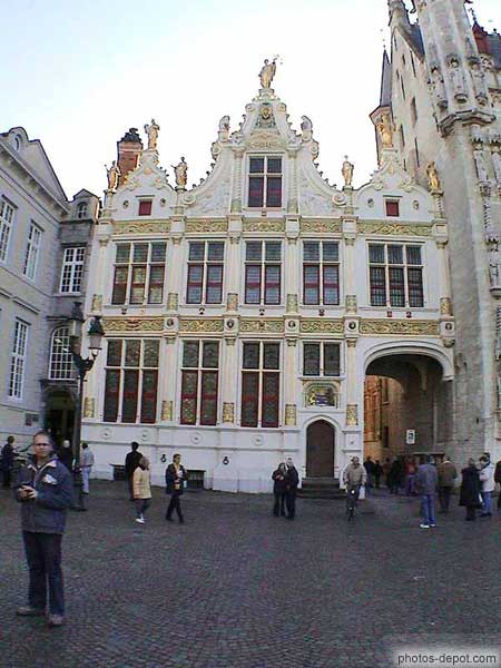 Ancien greffe facade renaissance 3 pignons à volutes place du bourg, Belgique, Bruges