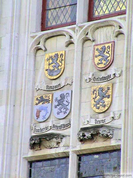 Blasons facade hotel de ville fin XIVe, Belgique, Bruges