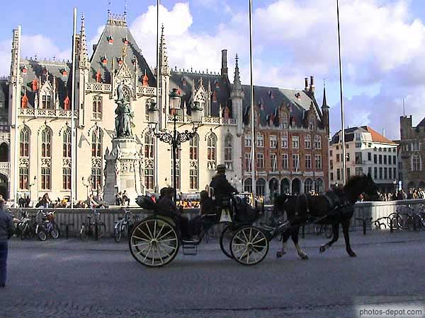Calèche poste & administration provinciale neogothiques grand place2, Belgique, Bruges