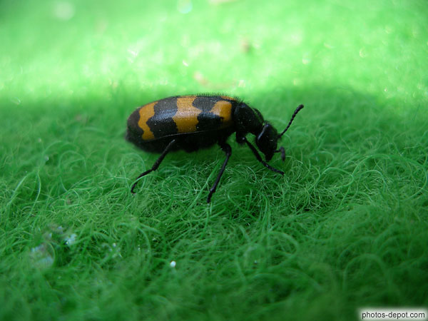 Insecte au dos poilu, bariolé d'orange et noir, France, Languedoc Roussillon, Narbonne