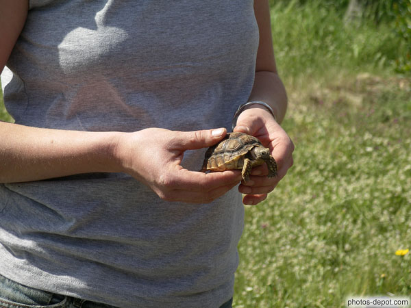 Bébé tortue éléphantine, bébé de Léon et Léontine, France, Languedoc Roussillon, Sorede