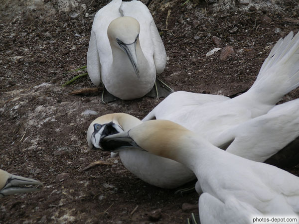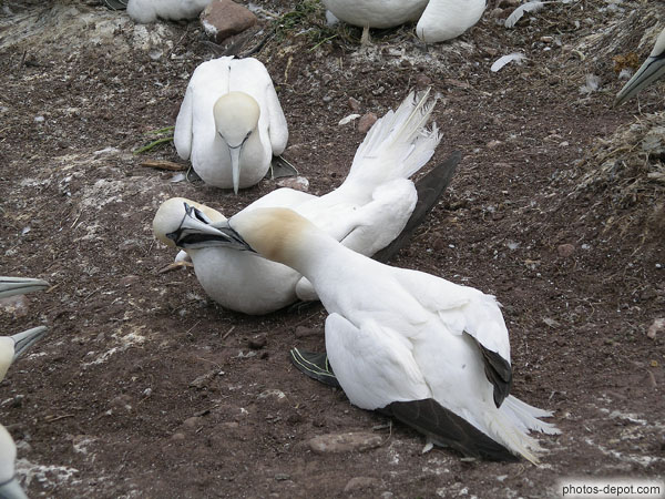 Coups de becs, fous de bassan, Canada, Gaspesie, Ile Bonaventure