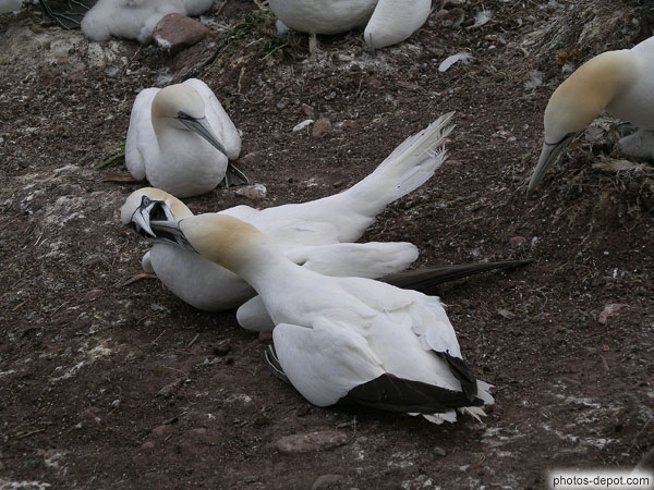 Coups de bec des fous de bassan, Canada, Gaspesie, Ile Bonaventure