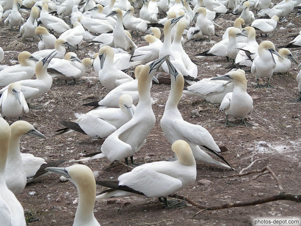Coups de becs des fous de bassan, Canada, Gaspesie, Ile Bonaventure