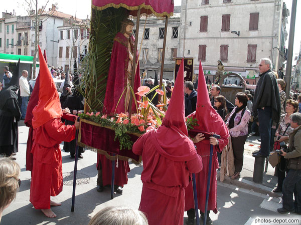 Différentes scènes de la passion portés en procession de la Sanch, France, Languedoc Roussillon, Perpignan