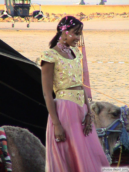 Jeune femme et musiciens tunisiens, France, Normandie, Deauville