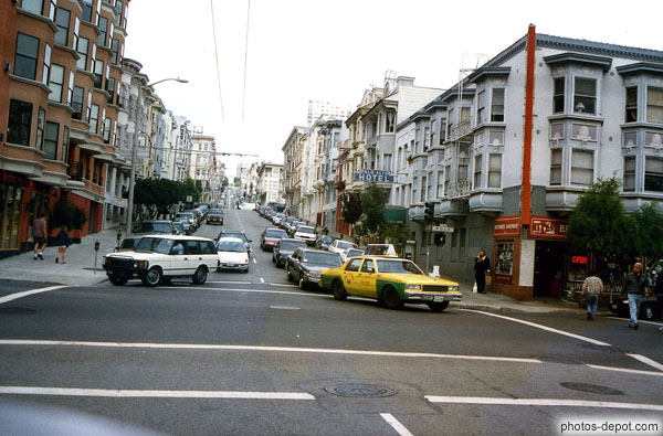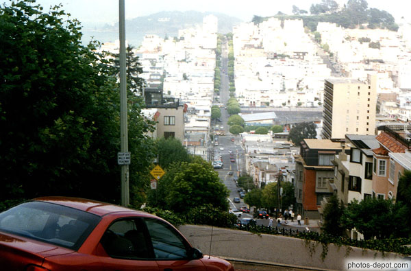 Une rue à pente forte comme beaoup à SFO, USA, Californie, San Francisco