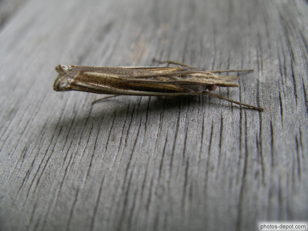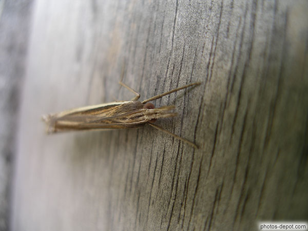 Insecte gris ailes repliées, France, Bretagne, Redon
