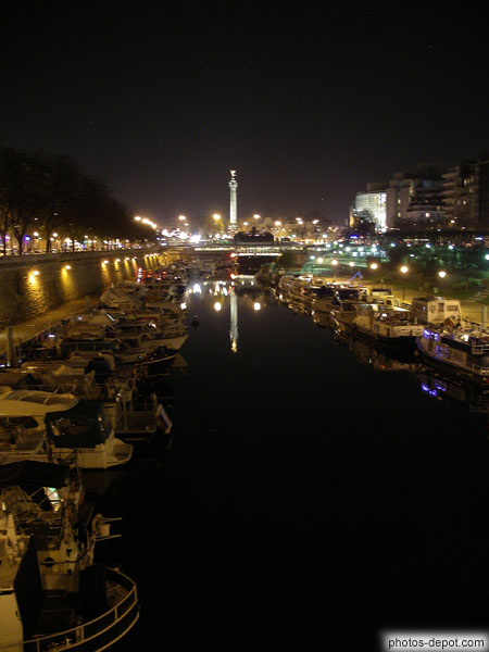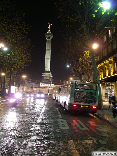 Colonne de Juillet, se reflettant dans l'eau la nuit, France, Paris