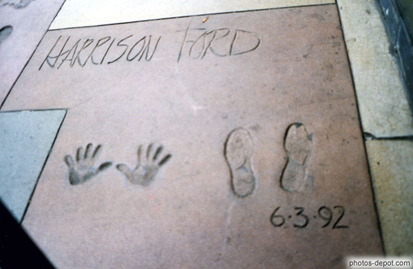 Empreintes mains et pieds de Harrison Ford sur l'esplanade du Mann's Chinese Theatre, USA, Californie, Los Angeles