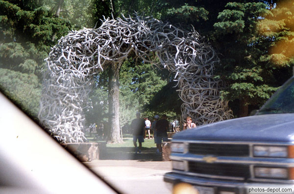 Arche en bois de cerfs : Jackson Hole city is deer country, USA, Wyoming, Grand Teton